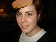 Of course I look hot with a pancake on my head, I look hot in anything. Especially Rick Smith's oxford shirt that I plucked from the floor beside his bed.